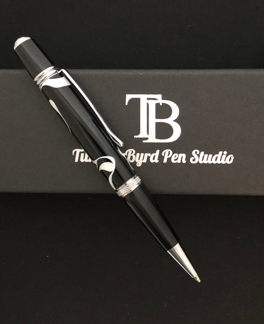 BP359-1120 Black and White Ribbons - Handcrafted Ballpoint Pen