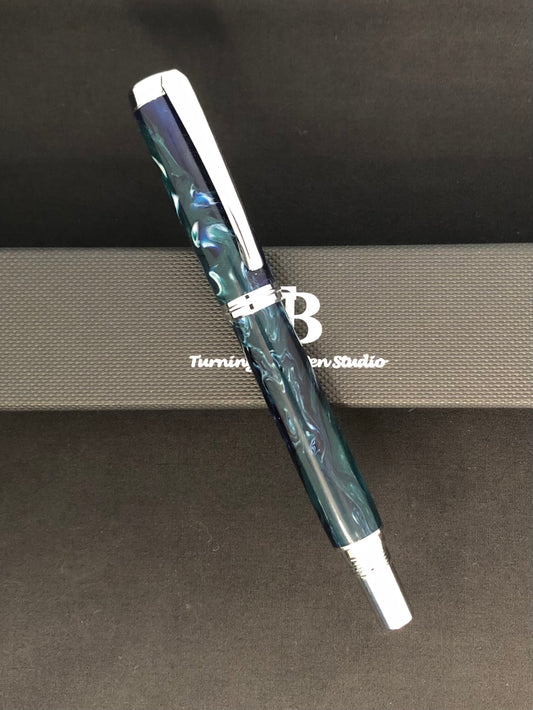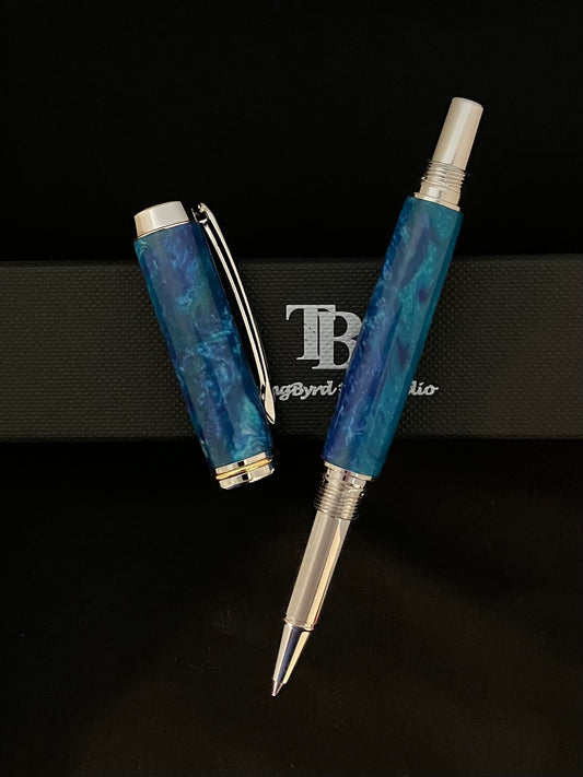 RB417-1221P Deep Blue Currents- Handcrafted Rollerball Pen