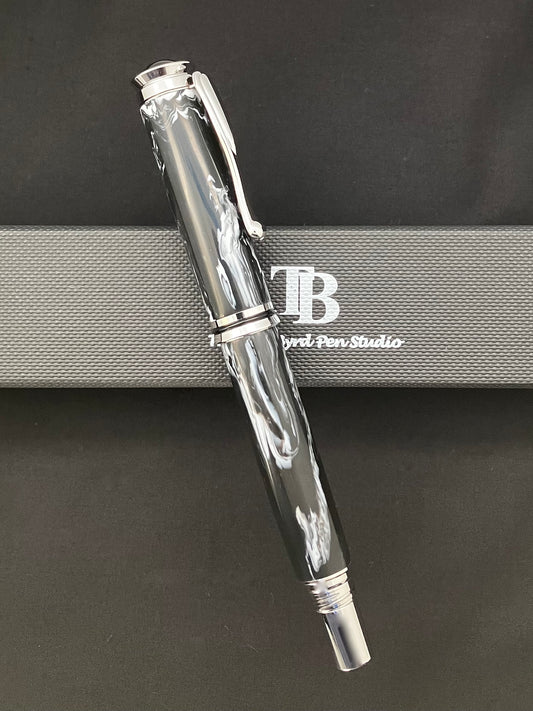 RB489-0923 Black & Silver Mist - Handcrafted Rollerball Pen