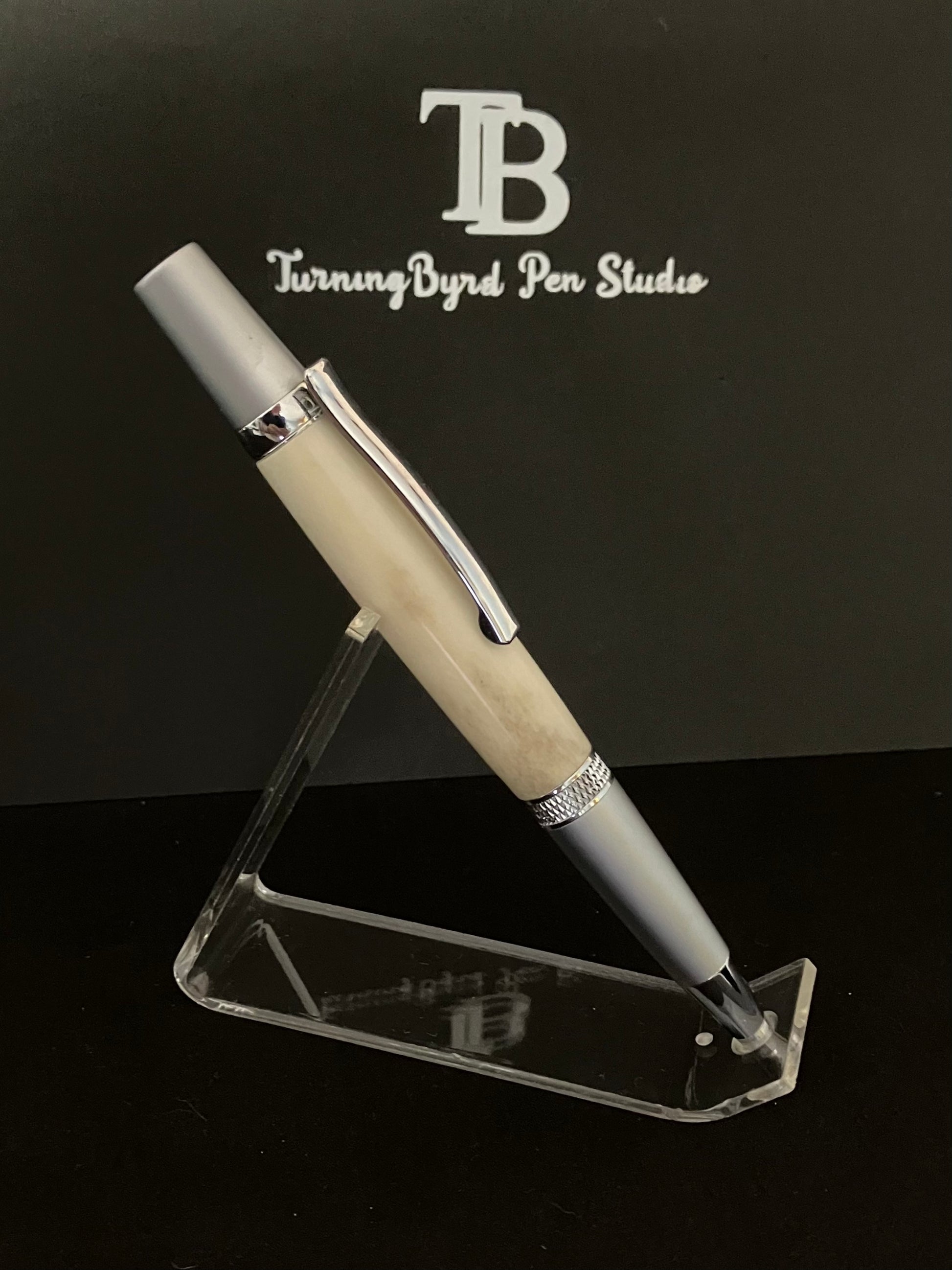 Awesome Whitetail Antler twist ballpoint pen. The antler is matched with chrome and satin chrome plated components. A pen to be proud of!
