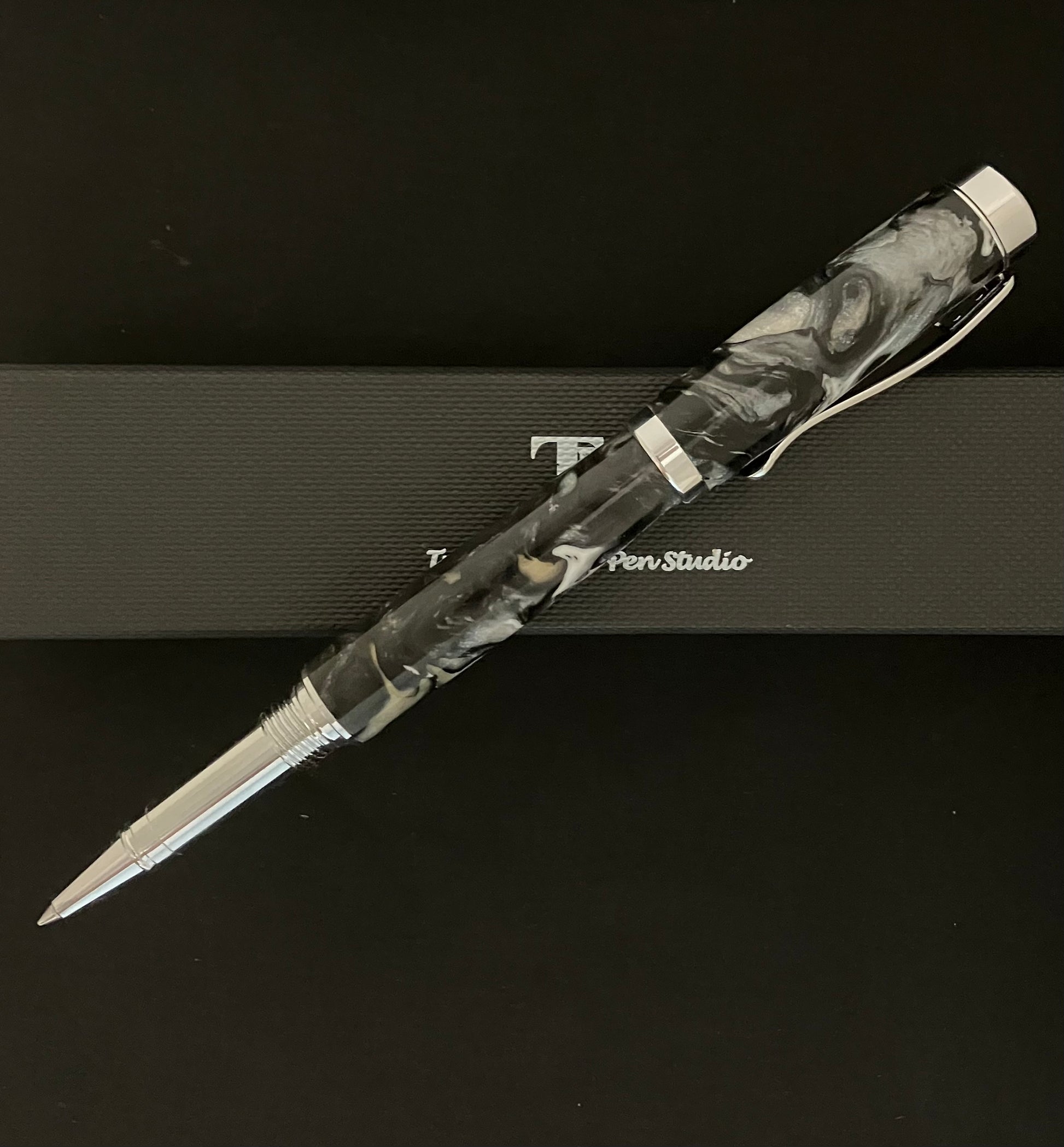 RB489-0923 Black & Silver Mist - Handcrafted Rollerball Pen