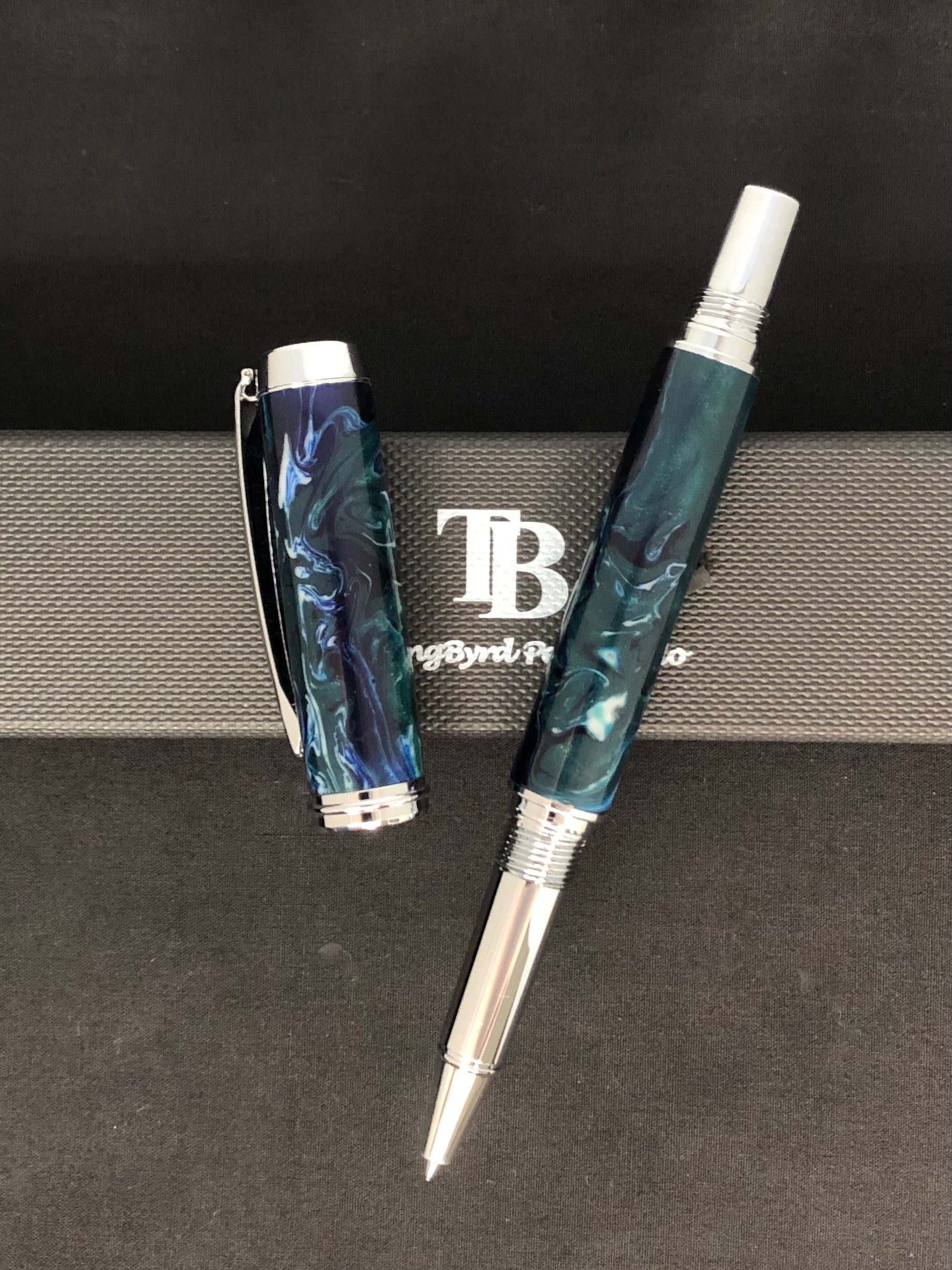 RB417-1221P Deep Blue Currents- Handcrafted Rollerball Pen