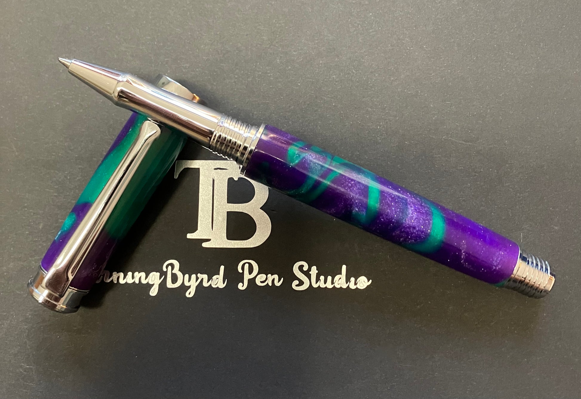 Indulge in the beauty of writing with our Grape Vine Resin Rollerball Pen. This exquisite pen is handcrafted with a stunning combination of green and purple resin, resembling the lush grape vines loaded with juicy grapes. Its perfect balance and mesmerizing pattern swirls make it not only a functional writing tool but also a work of art.