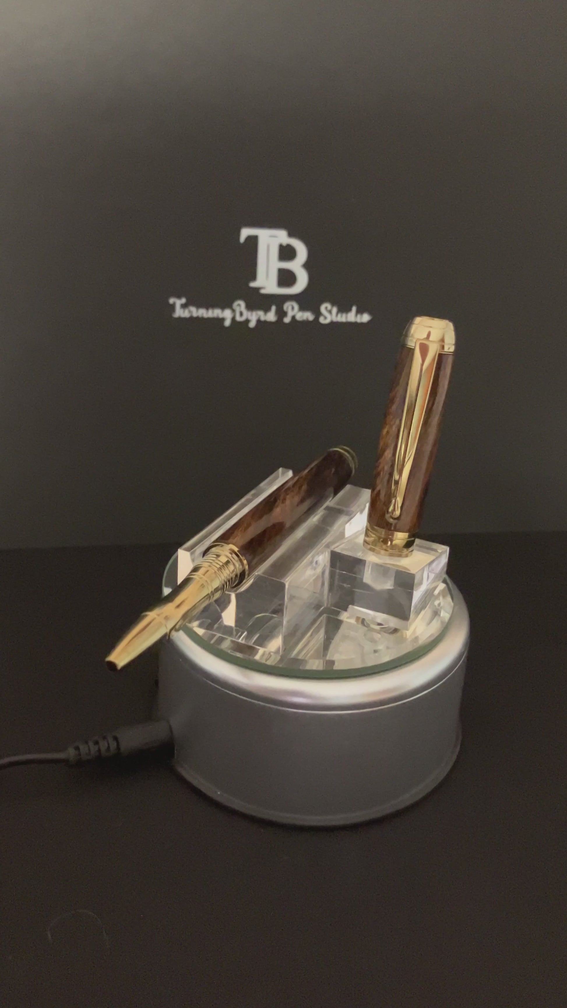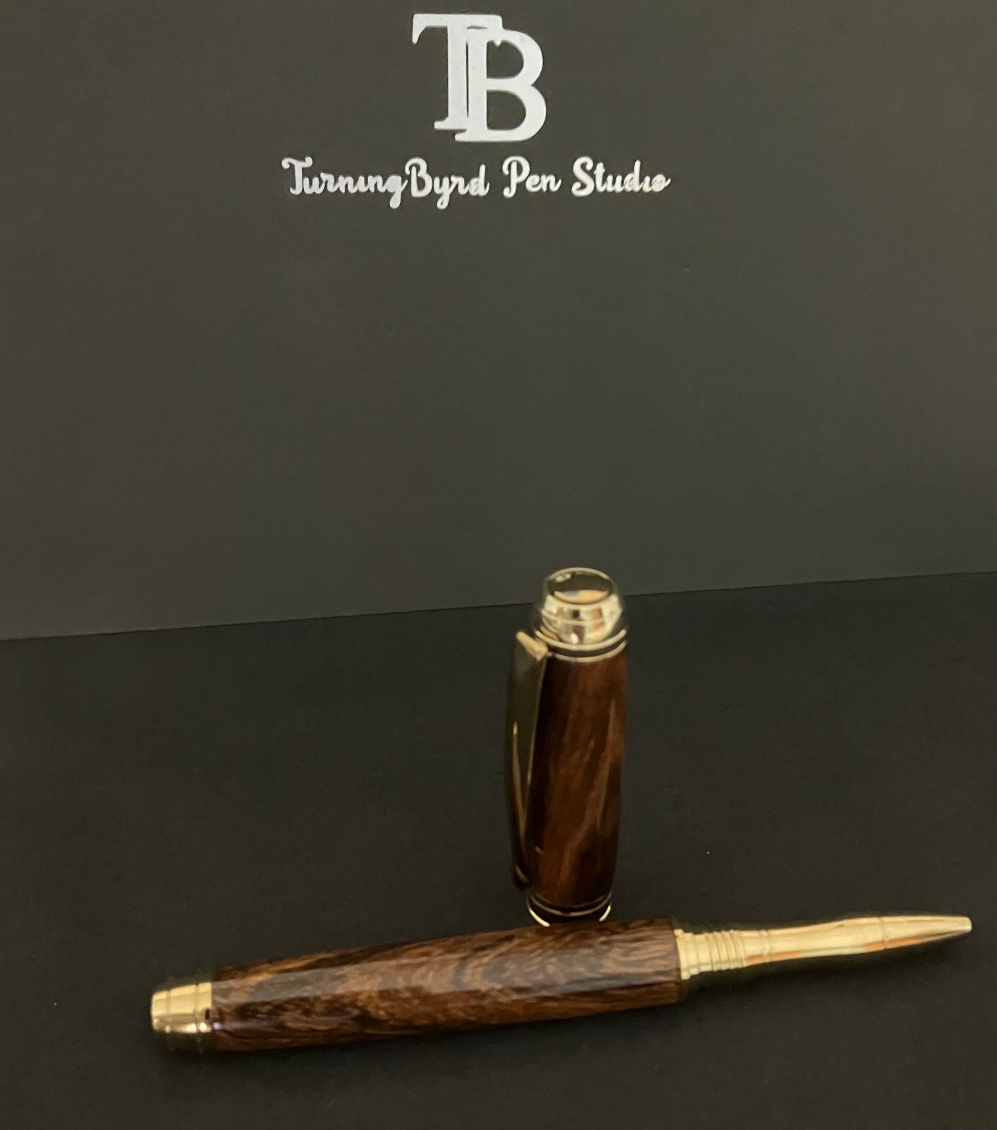 If you are looking for that very unique, one of a kind handcrafted rollerball pen - this is it! A very unique pen - beautiful highly grained Desert Ironwood matched with gold plating -Truly a one of a kind pen! This non-postable pen is beautifully balanced and equipped with an extremely smooth writing Schmidt 5888 refill.