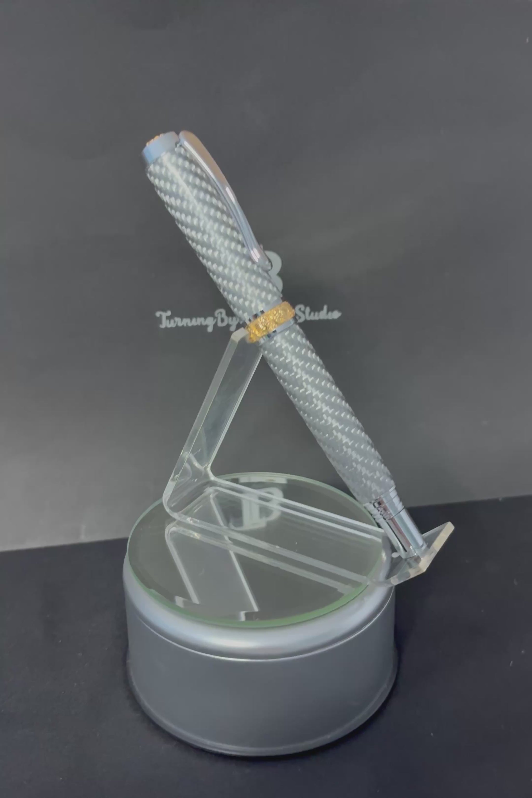 - Materials & Design: Silver carbon fiber body cast in resin; ornate 24k gold-plated center band with intricate floral etchings; polished rhodium components on the clip, tip, and finial for a cool, mirror-like shine.