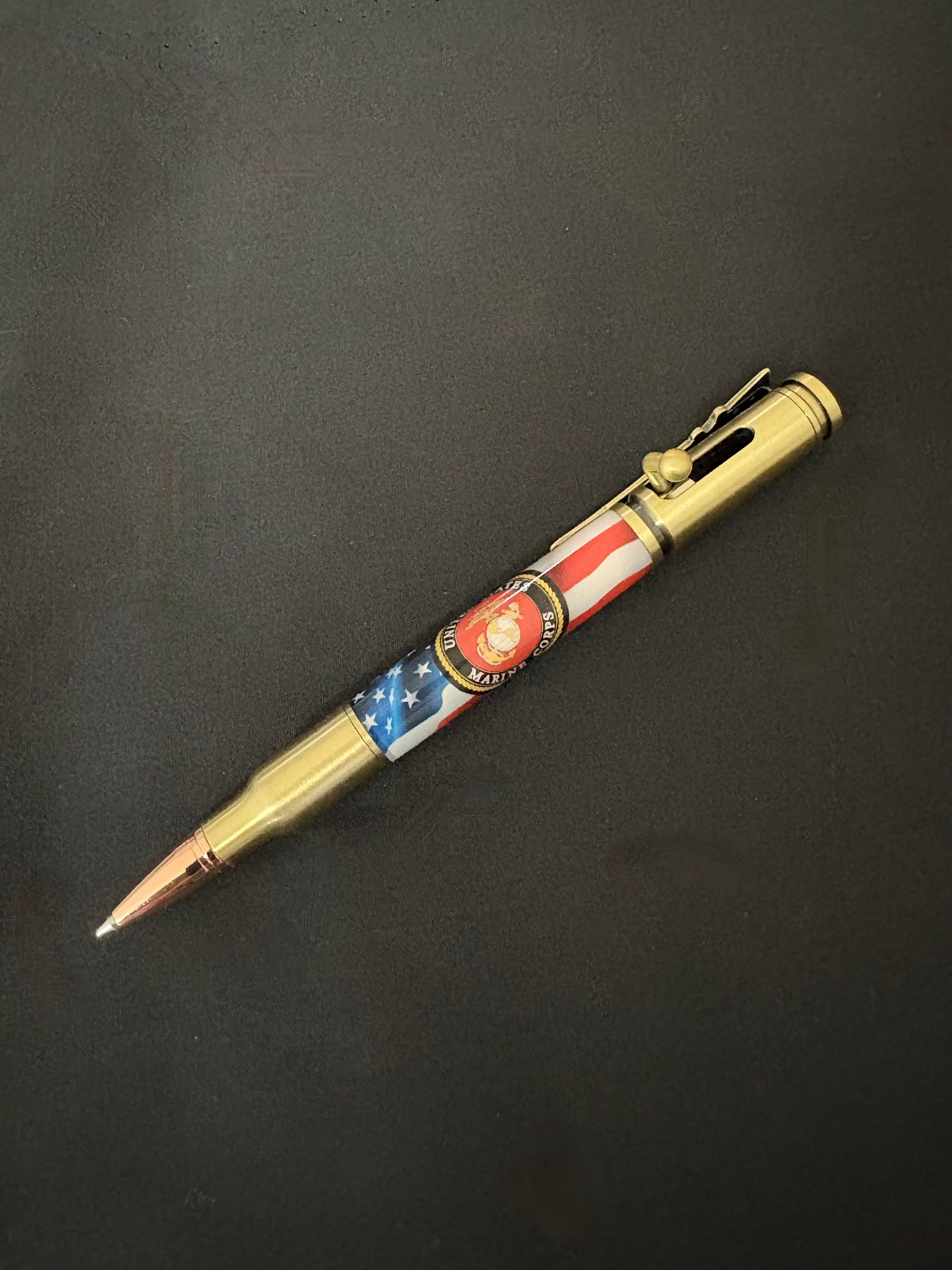 Handcrafted US Marines Bolt Action Pen — Antique Brass Finish | Stars & Stripes Design